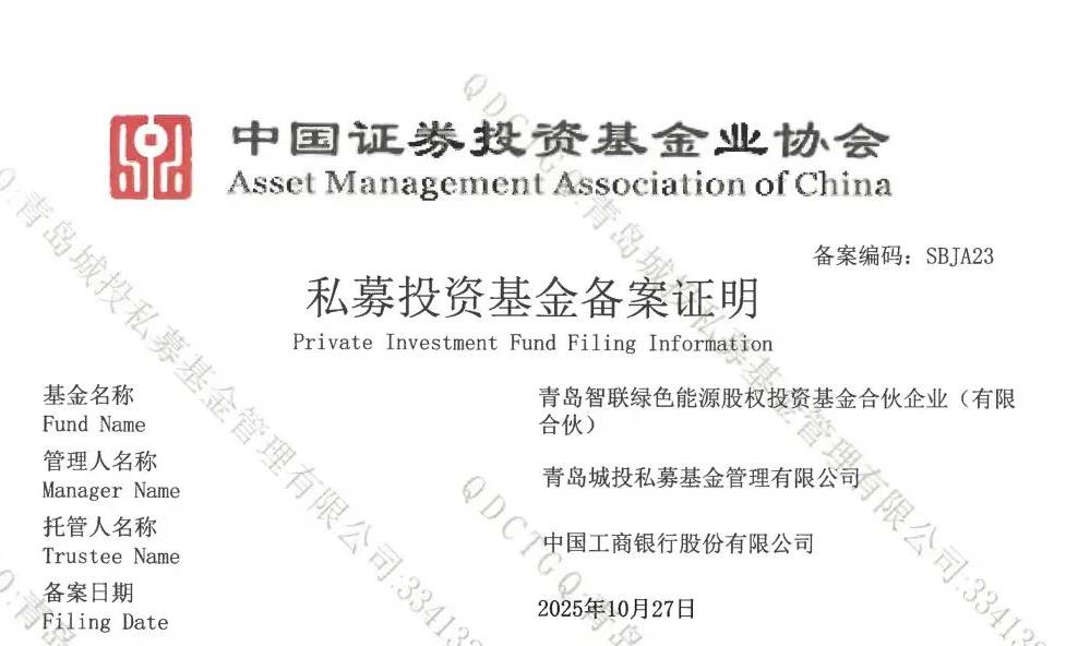 市級基金改革首單落地!青島城投發起組建的智聯綠色能源基金成功備案